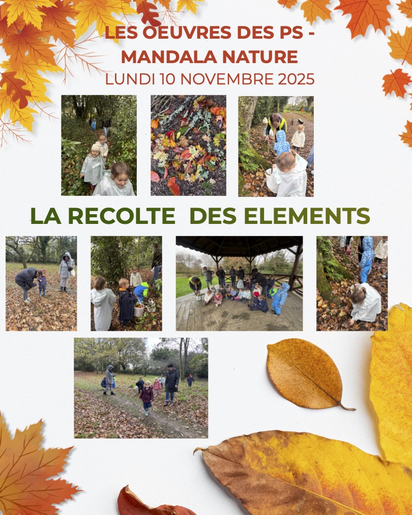 Toujours en lien avec la pédagogie du dehors, les élèves de TPS-PS ont travaillé sur le mandala nature avec notre partenaire EchoNature.